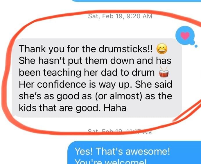 A lot of students come in already having some music experience from piano, and some might even have been playing drums.